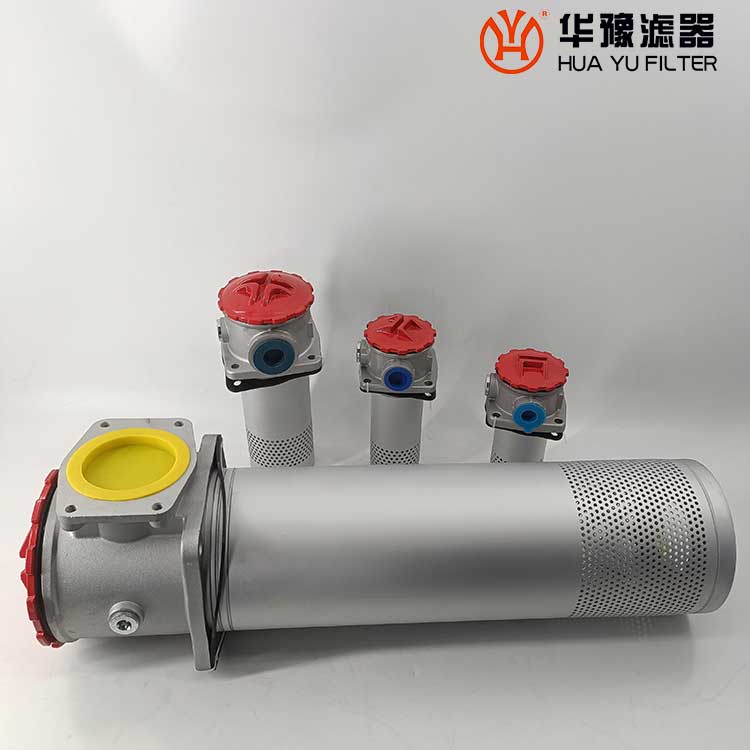 該過濾器是由兩只單筒過濾器、換向閥、旁通閥、發訊器、擴散器等組成。它被安裝在油箱的頂部,可在形同不停機的情況下更換濾芯,適用于連續工作的液壓系統回油精過濾,用來濾除液壓系統中諸元件磨損產生的金屬粉末以及密封件的橡膠雜質等,使流回油箱的油液保持清潔,以利于系統中的油液循環使用。
