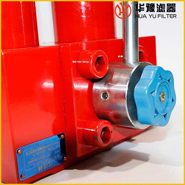 當其中一只過濾器的濾芯堵塞至壓差發訊器壓力指示值為0.5MPa時、發訊器發訊、這時必須更換濾芯。只要轉動換向閥、另一只備用過濾器即刻工作,這時只需旋開螺塞放完油、再旋下外殼、就可更換已堵塞的濾芯。需更換濾芯側過濾筒,允許少量內泄漏。如因故未能及時更換濾芯壓差繼續升至旁通閥開啟壓力