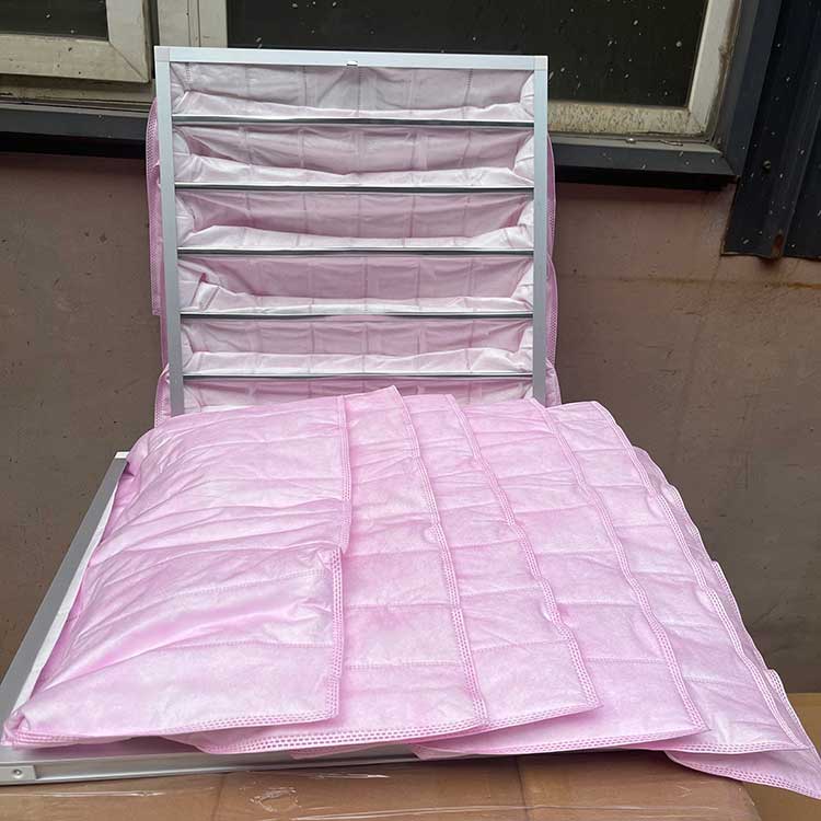 F7中效袋式空氣過濾器,顏色為粉紅色,效率80%~90% 常用袋數6個,5個,3個;