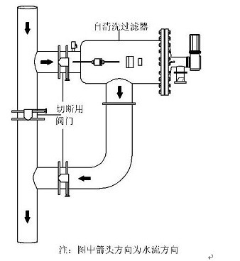 (6)安裝時應考慮便于檢修,自清洗過濾器前后應安裝關斷閥門,且應安裝旁通管道。