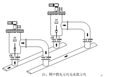(3)自清洗過濾器應安裝在需要保護的用水設備之前,并盡量靠近用水設備。
